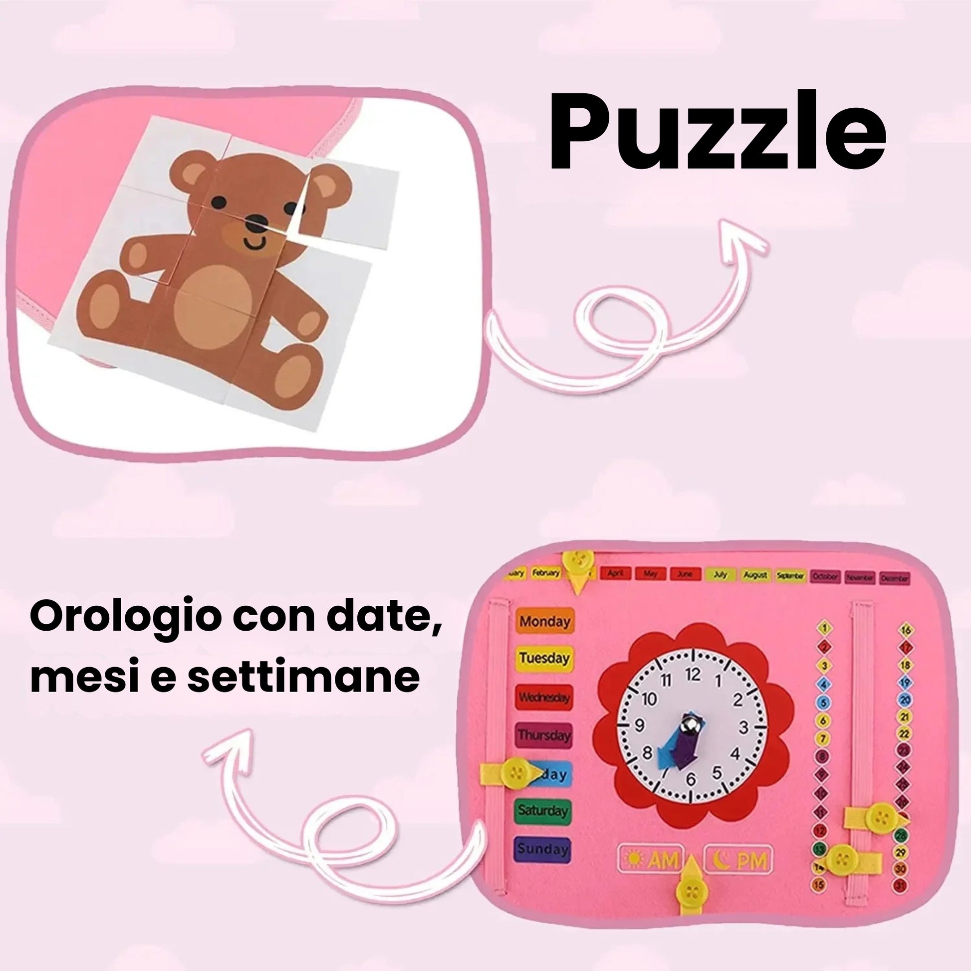 A differenza di molte busy board generiche, il nostro pannello non è solo un giocattolo: è un supporto pedagogico studiato per favorire autonomia, concentrazione e competenze cognitive reali.